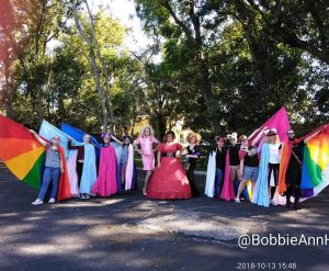 We also marched in the Come Out with Pride Orlando and Gainesville Pride parades. Thank you once again, to Jolly Time LLC for generously donating our Rose Dynasty Queens float and driving us in the Orlando parade. Our youth displayed their spectacular Pride flag angel wings created by Scott DeShazo and Heather O’Brien-Rothmann, and we gave out hundreds of “Free Mom Hugs” throughout the parade route.