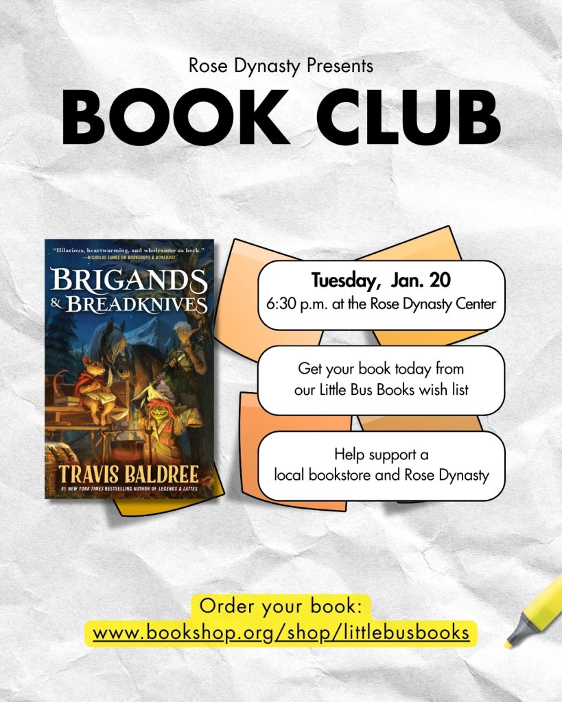 Join us for January’s book club as we discuss “Brigands and Breadknives” by Travis Baldree.