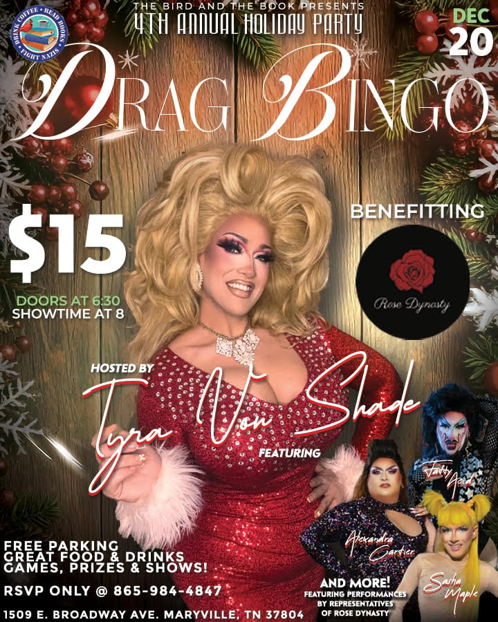 Tennessee friends, this one is for you! Join the Bird and the Book in Maryville for another edition of their drag bingo benefitting the Rose Dynasty Center! $15 to play, Ages 18+.