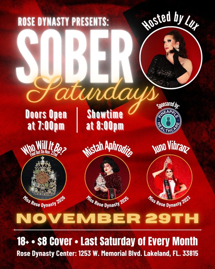 Join us for our monthly drag show featuring local performers and alcohol/drug-free environment. This event is ages 18 and up.