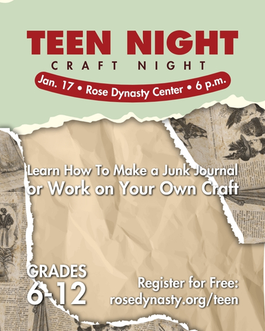 The 3rd Saturday of each month we will have a teen night for ages 12-18! Join us in January for a craft night! Junk journal, create mood boards and more. We will be providing snacks and drinks.
